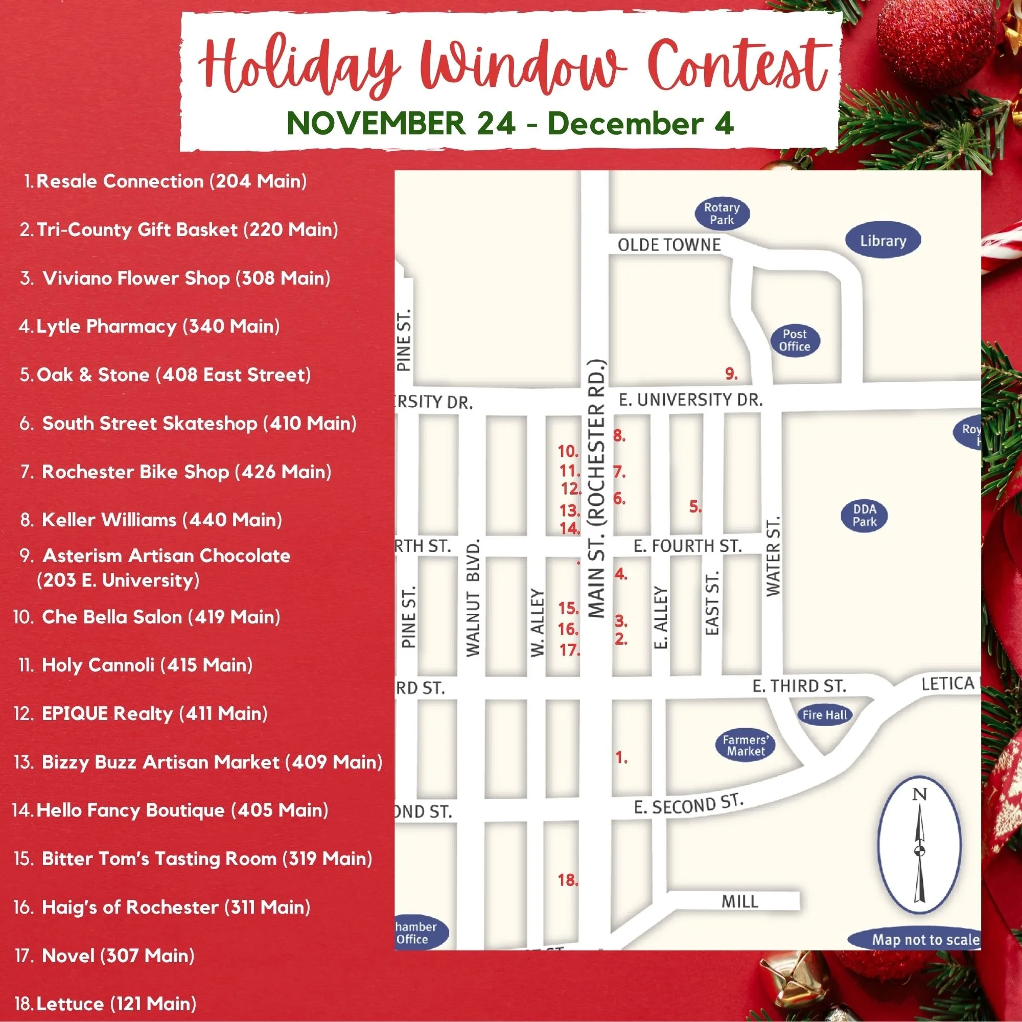 Text-to-vote for your favorite Holiday Window! Participating businesses will have a text code displayed on their storefront. Winners will be announced on stage at the Kris Kringle Market on Friday, December 5.